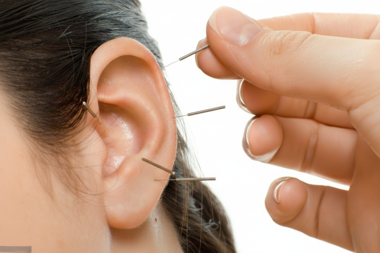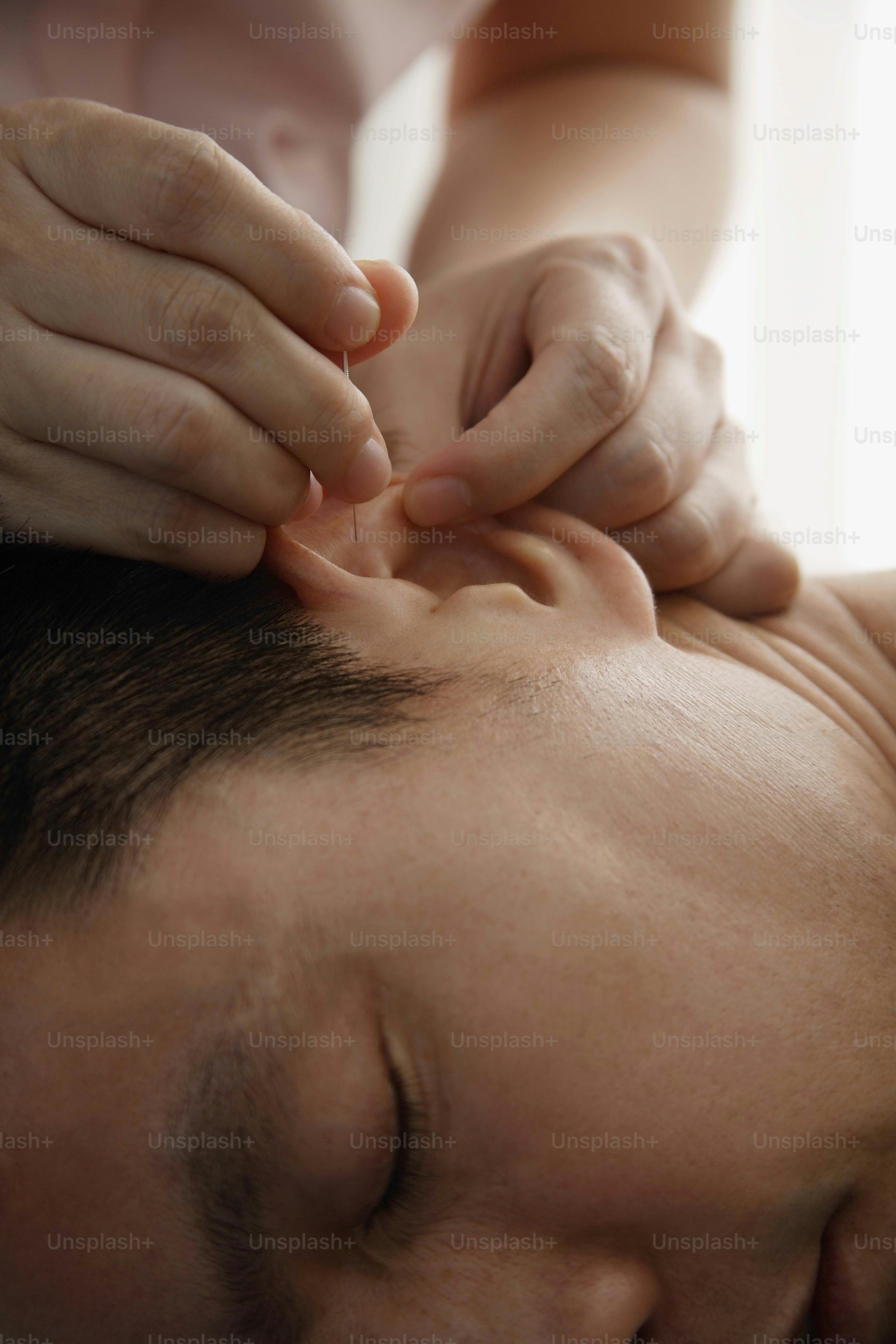 Estimulación de puntos en la oreja que se corresponden con diferentes partes del cuerpo para tratar diversas afecciones.