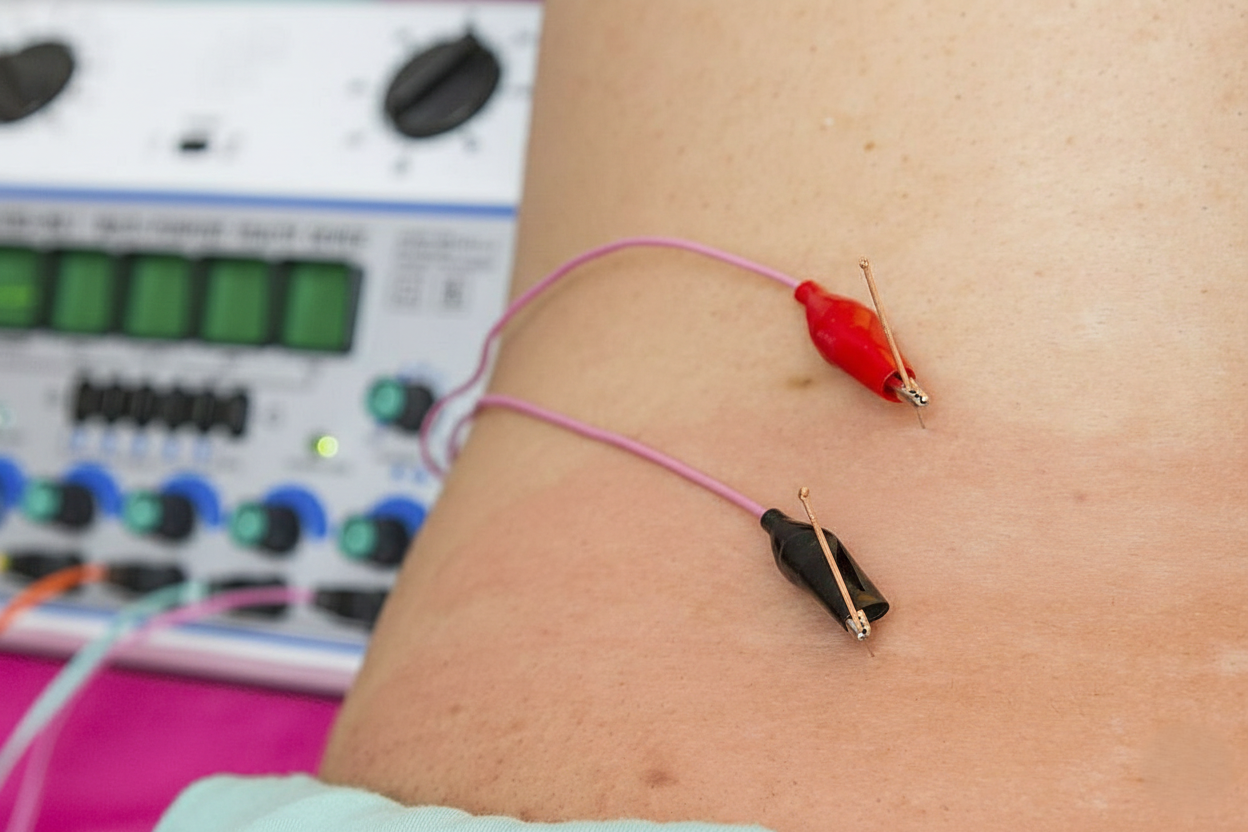 Una forma moderna de acupuntura donde se aplica una pequeña corriente eléctrica a las agujas para potenciar el efecto terapéutico.